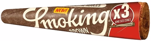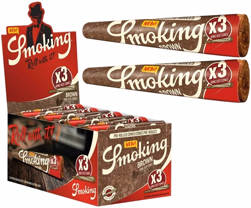 Smoking Brown 3pk Pre-Roll Cones – King Size. 50 Packs In A Box Display With 3 Cones Per Pack.