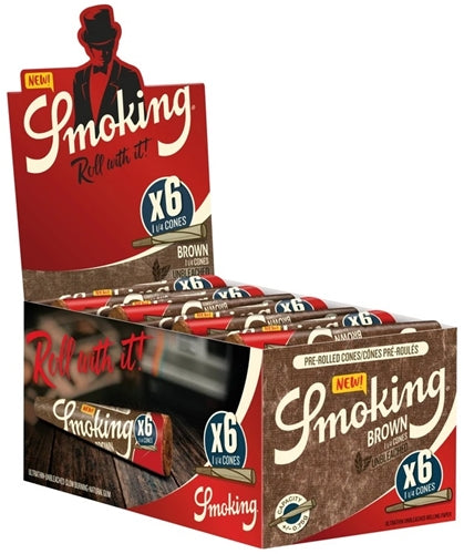 Smoking Brown 6pk Pre-Roll Cones – 1 1/4 Size. 50 Packs In A Box Display With 3 Cones Per Pack.