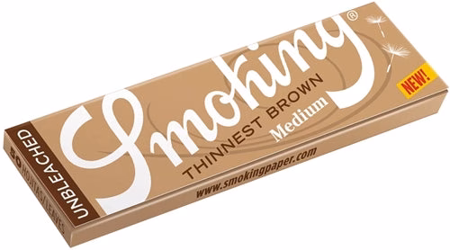 Smoking Thinnest Brown Unbleached Rolling Paper – 1 1/4 Medium Size. 50 Leaves In Each Booklet With 25 Booklets In A Box Display.