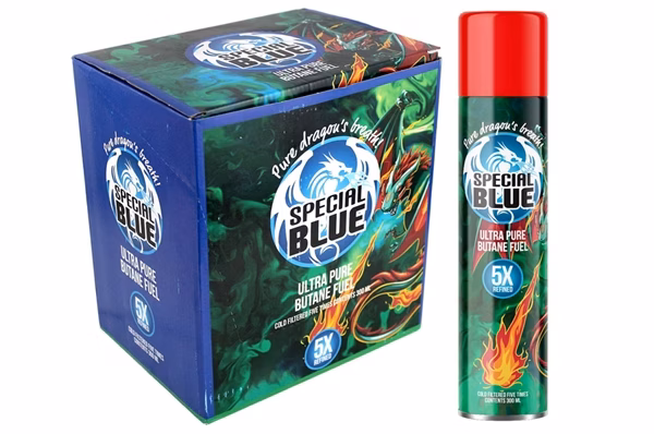 Special Blue 5x Butane 300ml – Refined Lighter Fuel Refill. 12 Cans In A Box Display.