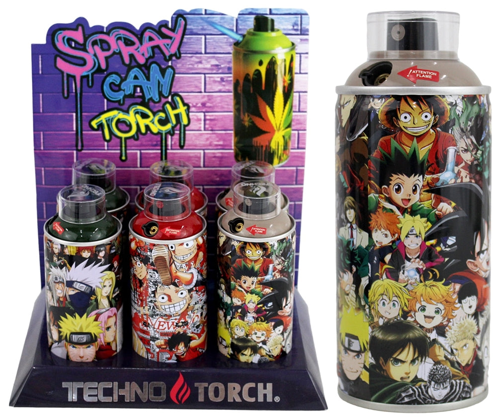 Spray Can Design Torch Lighters 6pk – Anime. 5″. 6 Lighters In A Box Display.