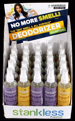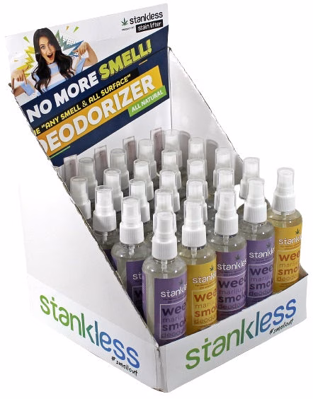 Stankless Stain Lifter Weed Marijuana Smoke Deodorizer. 25 x 4oz Bottles In A Counter Top Display.