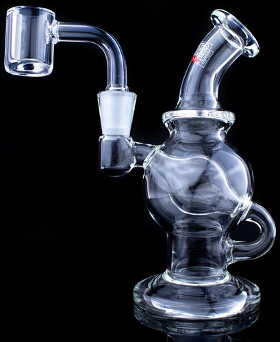 the go or at home! It features a 10mm female joint with quartz banger. Featuring a spherical hollow “ball” shape, fixed feed-through stem as well as a thick base and construction. This rig design allows for you to get a perfect flavorful dab!