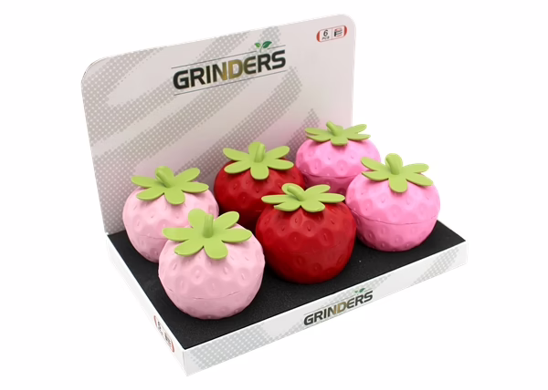 Strawberry Herb Grinders. 3″ x 3″. 6 Grinders in a Box Display.