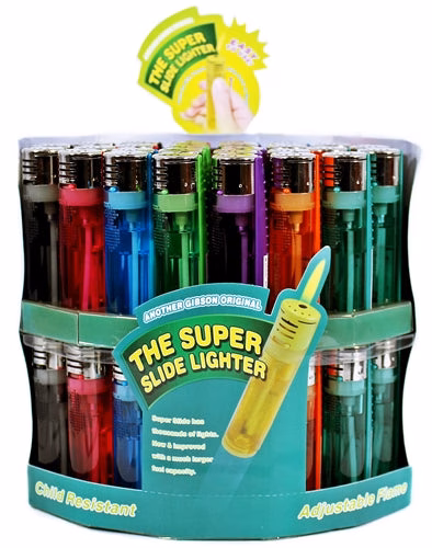 Super Slide Refillable Lighter. 56 Lighters In A Display.