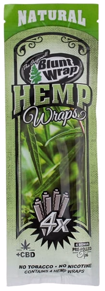 The Original Blunt Wrap – Hemp Wraps – Natural. 15 Pouches in a box display with 4 Hemp Wraps Per Pouch.