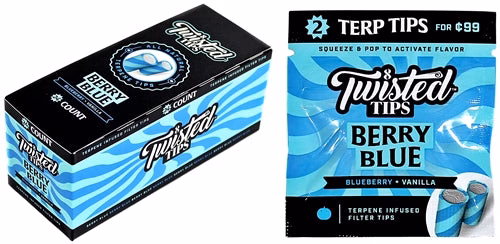 Twisted All Natural Terpene Tips – Berry Blue. $.99 Pre Priced. 24 Packs In A Box display With 2 Tips Per Pack.
