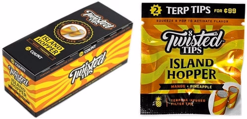 Twisted All Natural Terpene Tips – Island Hopper. $.99 Pre Priced. 24 Packs In A Box display With 2 Tips Per Pack.