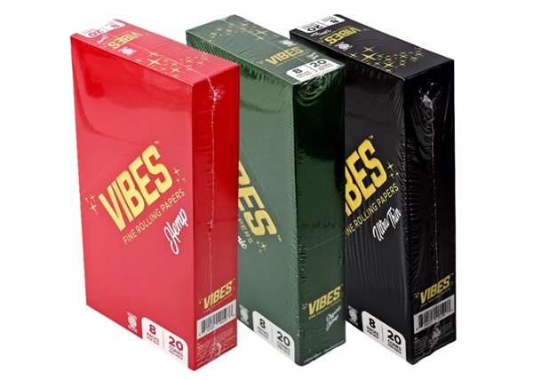Vibes Cones – 20-Pack x 8ct – King Size. 8 Packs In A Box Display With 20 Cones Per Pack.
