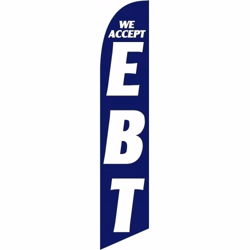 We Accept EBT Windless Business Bow Swooper Feather Flag Kit. Designed to dispay the full advertisement without any wind, although they fly with a rippling effect with the slightest breeze.