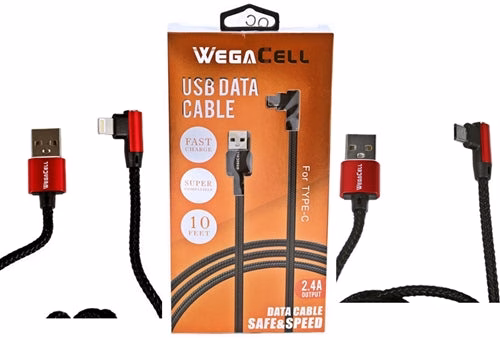 Wegacell USB Data Cable Phone Charger – Iphone – Micro – Type-C – 10FT