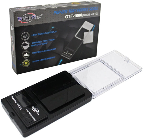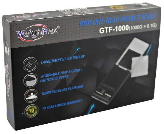 Weighmax 1000g x 0.1 Pop-Out Tray Pocket Scale GTF1000. 1ct.