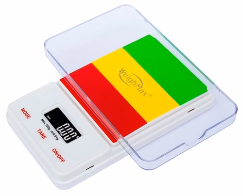 Weighmax 100g x 0.01 Rasta Digital Pocket Scale. Large LCD Display. Special Textured Coating. Protective Cover. 1ct.