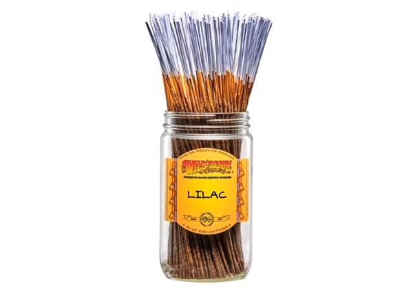100 hand-dipped Lilac incense sticks. A crisp lilac aroma with spicy notes of hyacinth, citrus, lily of the valley and musk.