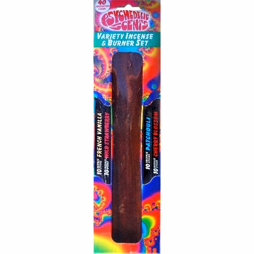Wood Incense Burner with 40 Psychedelic Scents