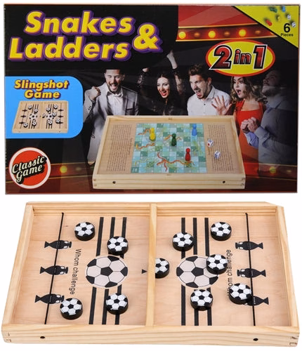 Wood Slingshot Snakes and Ladders 2 in 1 Game. 1ct.