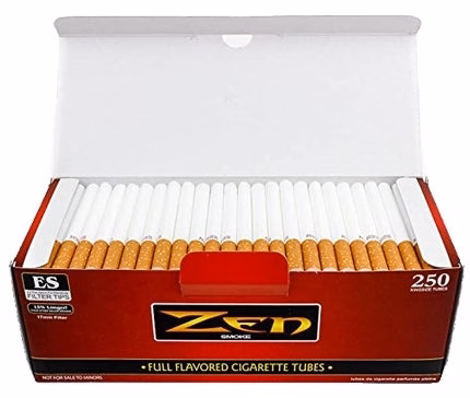 Zen Smoke Extra Smooth 250 King Size Full Flavored Cigarette Tubes. 17mm Filter. 84mm. 40 Boxes in a Case with 250 Tubes per box.